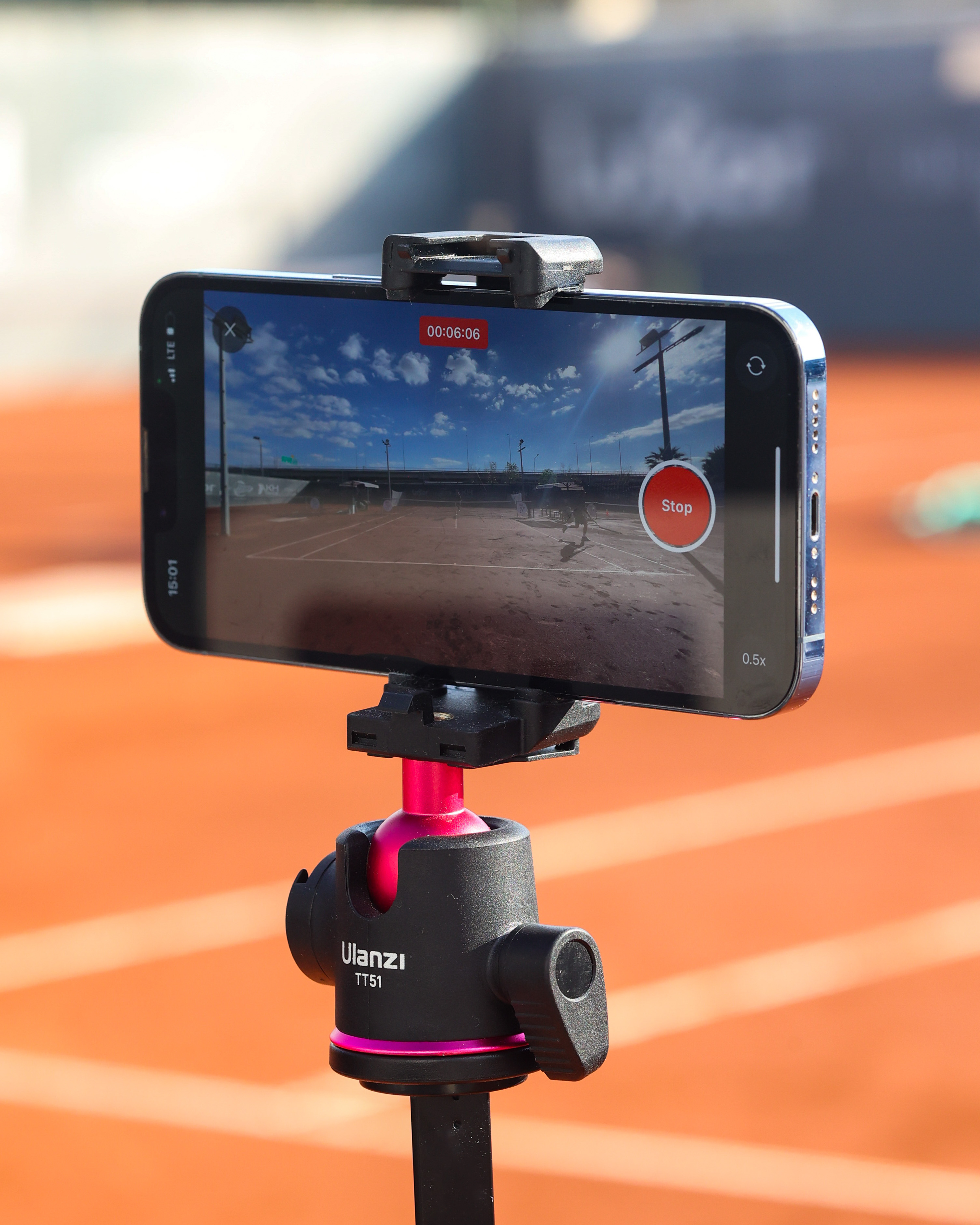This Tennis Cut shoot focuses on the real setup and real use case: a phone mounted behind the baseline, full court in frame, recording a session the way players actually train. The visuals highlight the practical details that make the result work, stable tripod, quick framing, and the in-app recording view that reassures you everything is aligned before you start hitting.